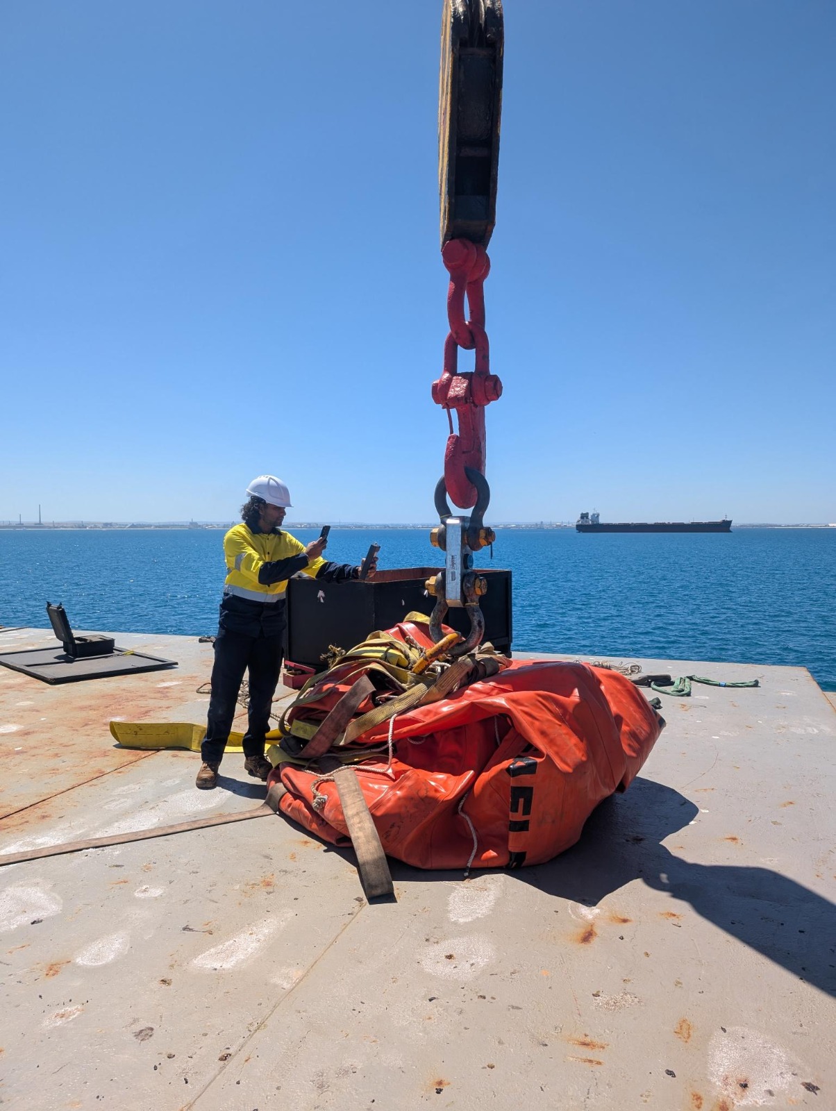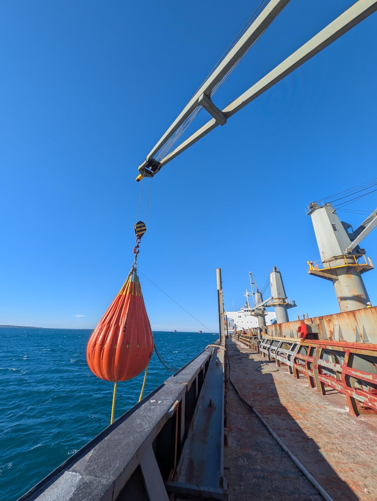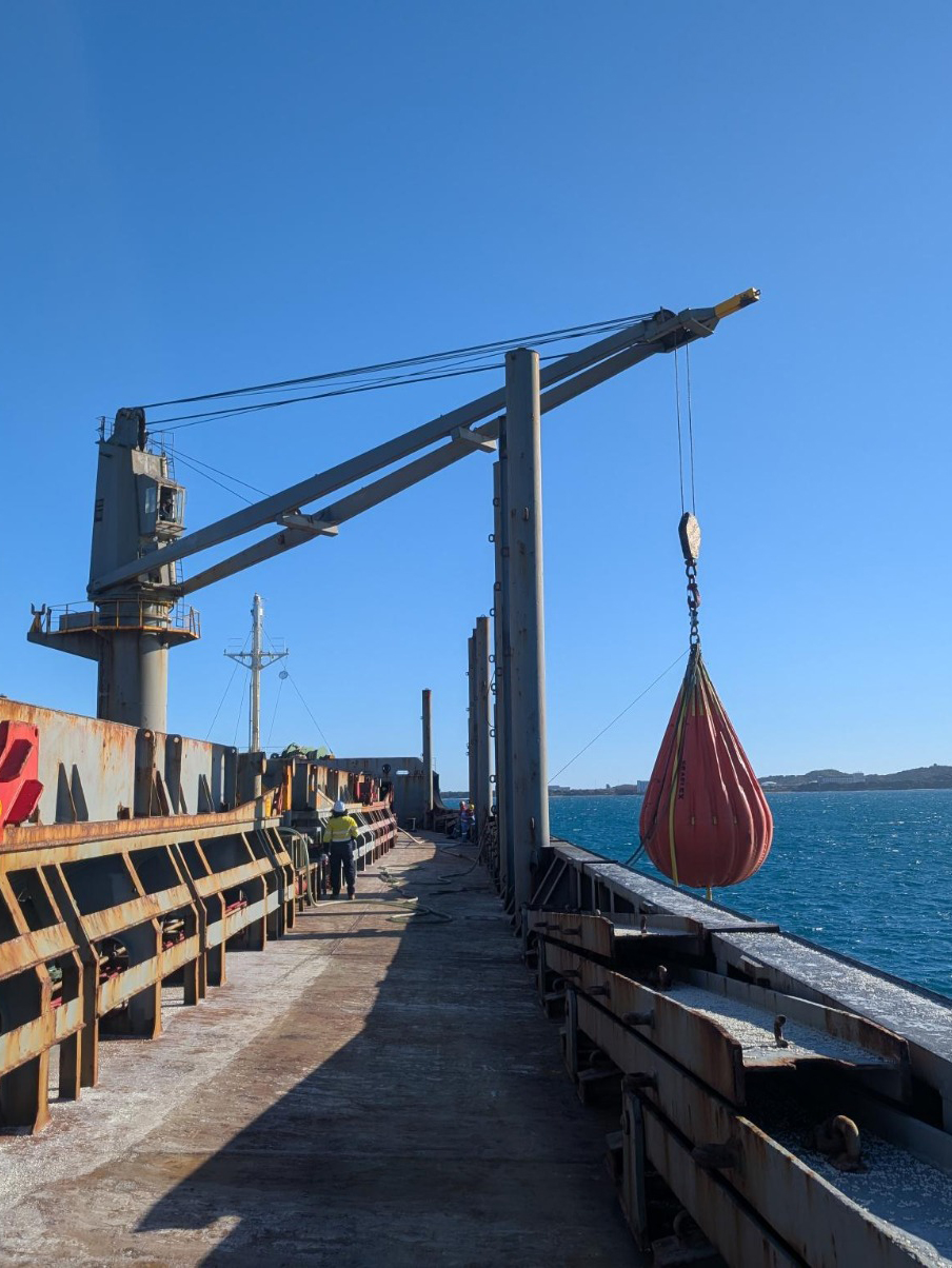 On 28th December 2024, Nautix Marine Team was engaged by the operators of MV Corxxxxxx to perform load testing on the vessel’s cargo cranes. The team mobilized with a 35-ton load test water bag and a calibrated load cell. Following a toolbox talk with the vessel’s master, the team safely and successfully conducted load testing on all four cargo cranes in compliance with ISO 4310 standards.